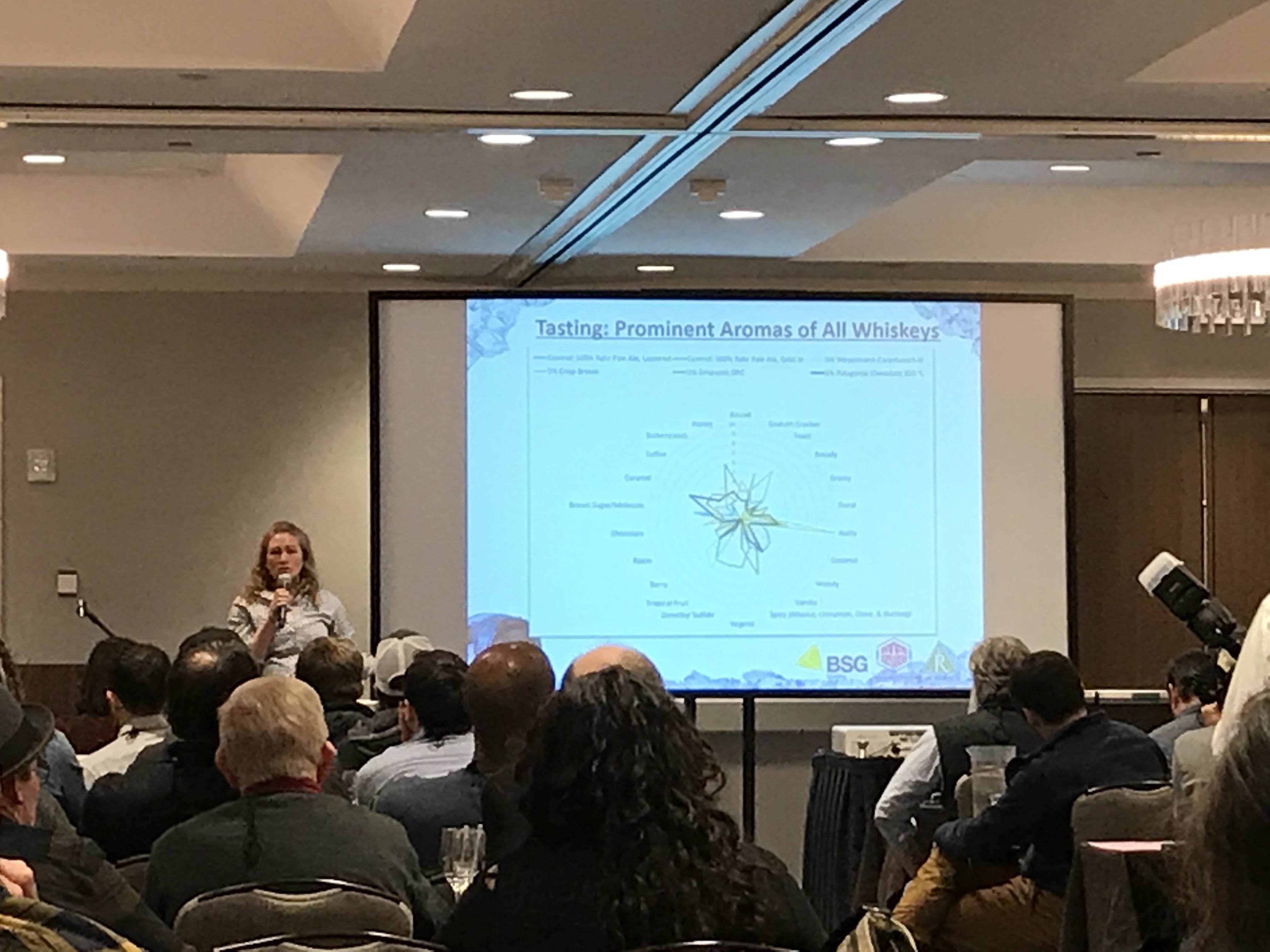 Glassware lined the tables of a presentation room at the 2019 ACSA Craft on Ice Distillers’ Convention and Trade Show. Audience members filled the room, and turned their attention to the front as Dr. Patricia Aron of the Rahr Technical Center, Ilya Soroka of BSG, and Seth Reid of 11 Wells Spirit Company presented a Sensory Analysis and Tasting of Malt Whiskey Mash Distillations.