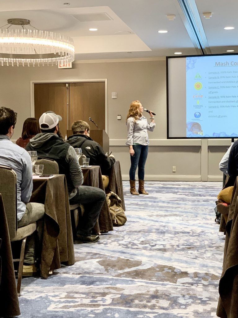 “We wanted to show the range of flavor specialty malts are able to produce in a spirit distillation,” Ilya said. Ilya’s portion of the presentation included presenting the mashing and the fermentation. Dr. Patricia Aron presented the tasting and sensory data collected from the Rahr Technical Center Sensory Panel. Seth Reid discussed the distillations, the equipment he used, and the considerations made in the production of the spirits for the tasting.